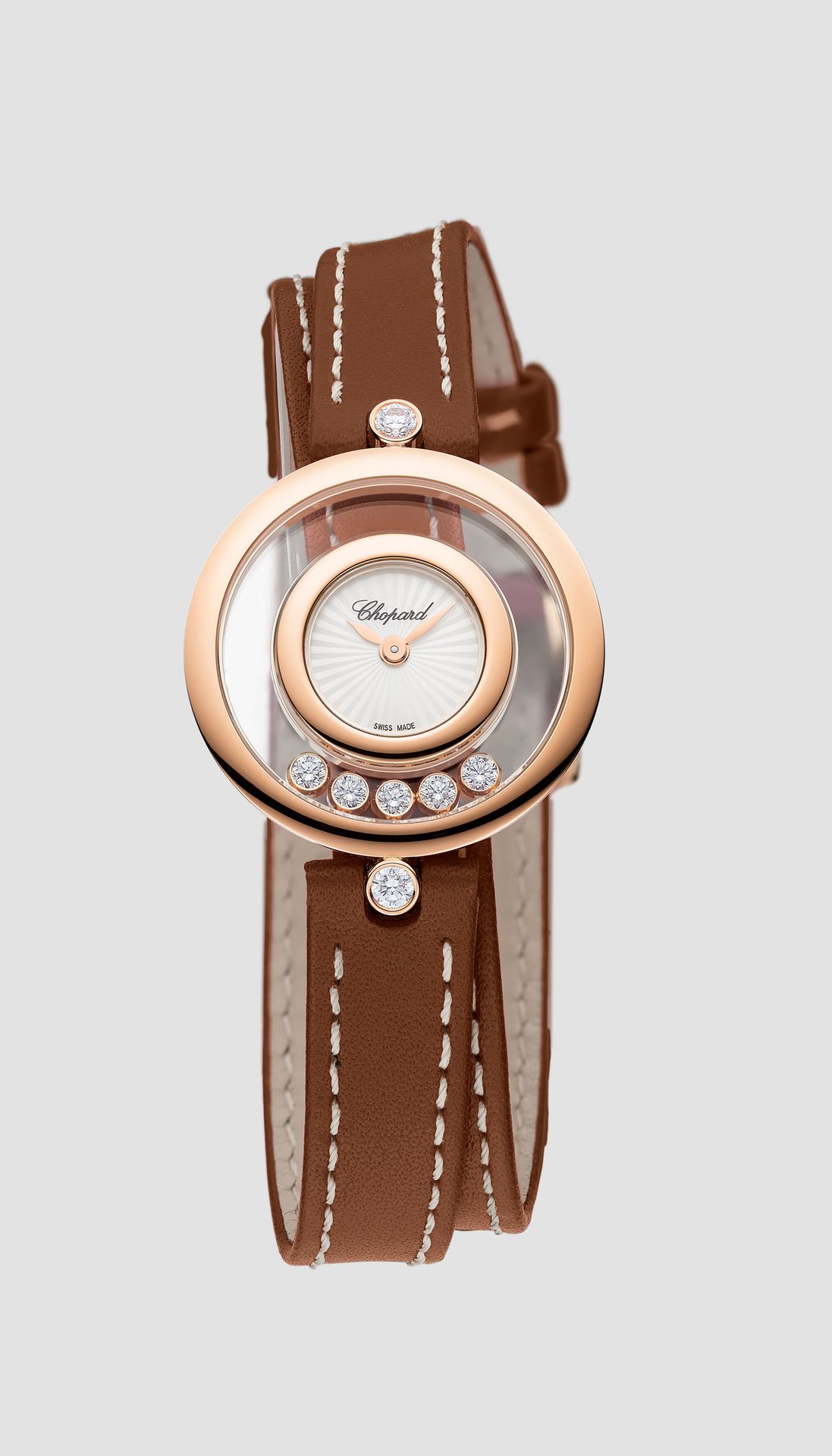 Seit 1976 die erste Happy Diamonds Uhr erfunden wurde, bringen die tanzenden Diamanten die Kollektion auf fröhliche Weise zum Strahlen. Die Happy Diamonds Uhren stehen in erster Linie für einen verspielten und entspannten, unabhängigen Geist, der offen für unbegrenzte Metamorphosen ist. Happy Diamonds wirbeln zwischen zwei absolut transparenten Saphirgläsern herum und vermitteln den Eindruck, dass die Diamanten die Haut berühren. Die berühmte Uhr gibt es neu mit langen, geschmeidigen Lederarmbändern, die, zweimal um das Handgelenk geschlungen, die betörende Präsenz dieser Uhr mit ihrem fröhlichen Charme verstärken. Little Diamonds Do Great Things