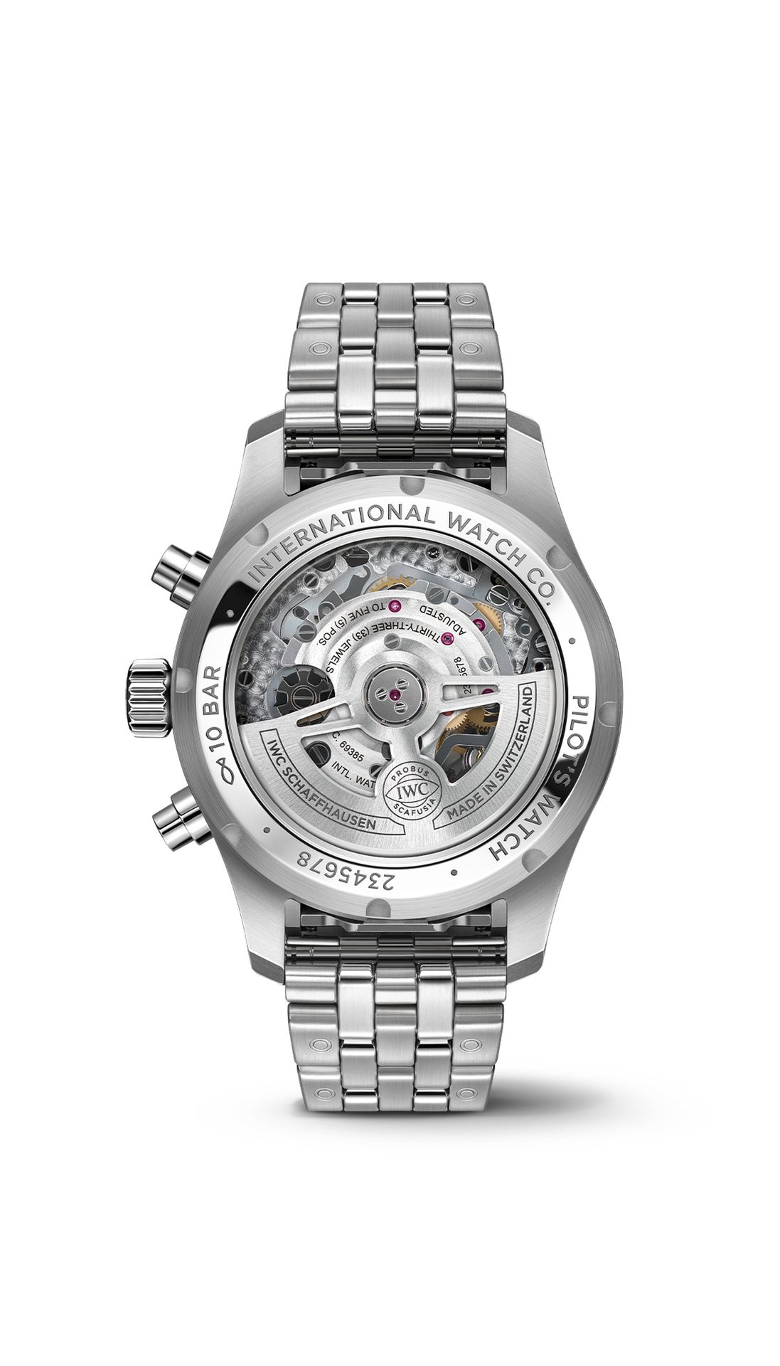 Die mechanische Stoppuhr bietet auch nahezu unbegrenzte Anwendungsmöglichkeiten im Alltag. Die Pilot’s Watch Chronograph 41 in einem ergonomischen Durchmesser von 41 Millimetern wird vom IWC-Manufakturkaliber 69385 angetrieben. Das robuste und präzise Chronographenwerk mit Kolonnenrad ist durch den Saphirglasboden sichtbar.