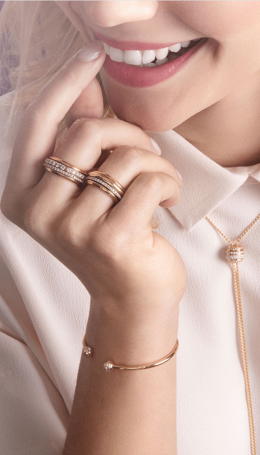 Der zu allen Gelegenheiten perfekt passende Piaget Possession Schmuck feiert eine spielerische, freie Form von Eleganz. Seine Drehringe erzeugen faszinierende Bewegung und machen diese Luxusschmuck-Kreationen zu modernen Glücksbringern.