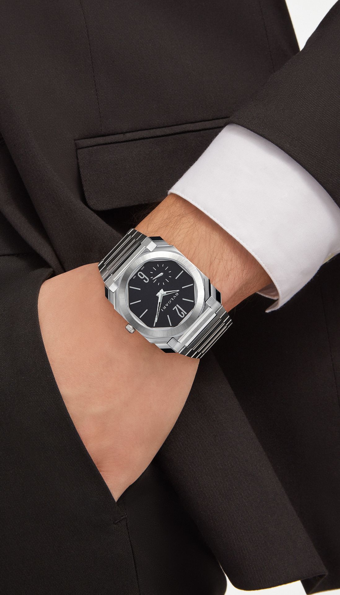 A true icon of the 21st century, the Octo Finissimo Automatic watch channels the rare fusion of edgy Italian design and Swiss engineering with its innovative satin-polished finishes. With its ultra-appealing look and uncompromisingly forward-thinking mechanics, the groundbreaking timepiece is emblematic of Bvlgari's integral bond between jewelry savoir-faire and watchmaking art. The Maison’s creative approach in working modern materials is here employed to set unforeseen design trends through the world of its Swiss-made timepieces.