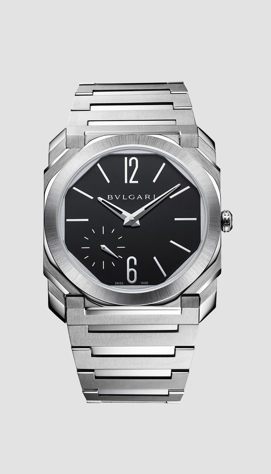 A true icon of the 21st century, the Octo Finissimo Automatic watch channels the rare fusion of edgy Italian design and Swiss engineering with its innovative satin-polished finishes. With its ultra-appealing look and uncompromisingly forward-thinking mechanics, the groundbreaking timepiece is emblematic of Bvlgari's integral bond between jewelry savoir-faire and watchmaking art. The Maison’s creative approach in working modern materials is here employed to set unforeseen design trends through the world of its Swiss-made timepieces.