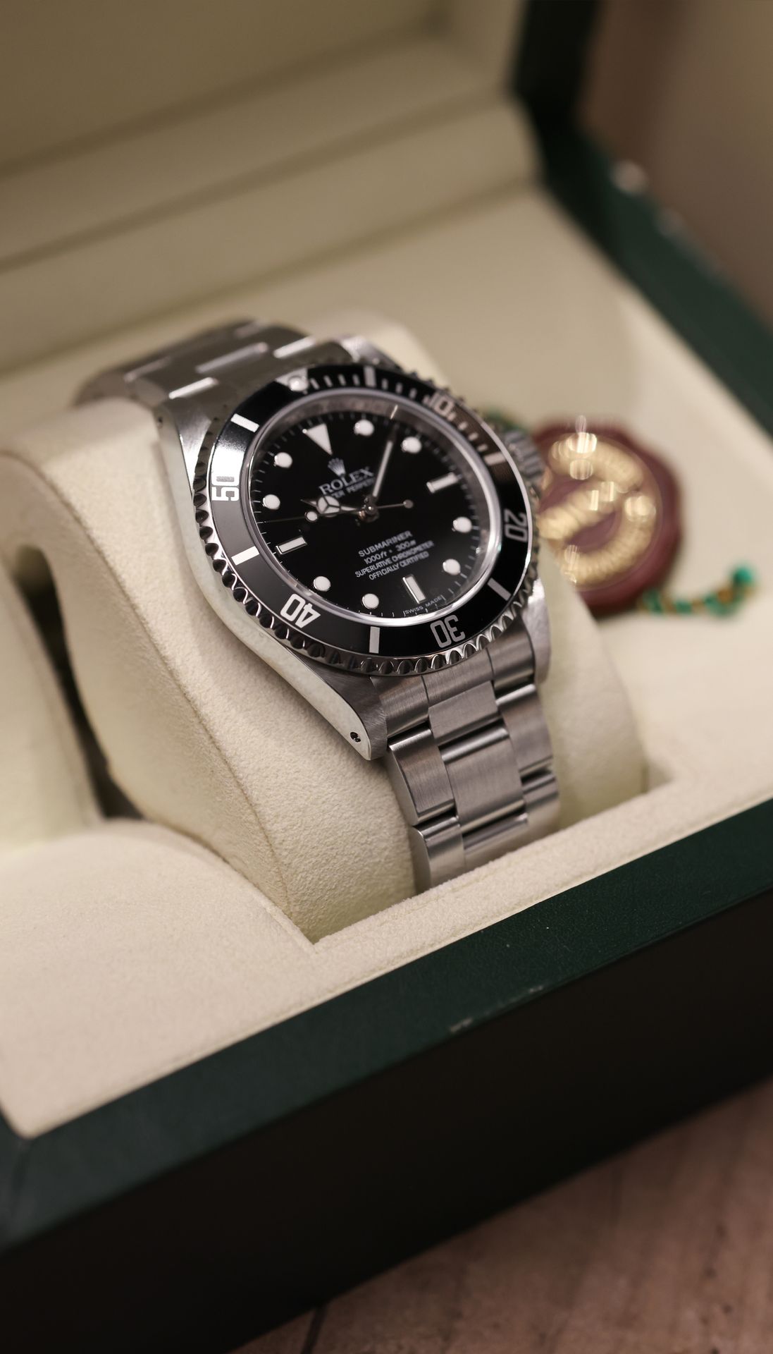 The reference 14060M was part of the Submariner line, which was first introduced in 1990, as a successor of reference 14060. This watch featured a number of updates and improvements over the previous models, including the use of Rolex's caliber 3130, a self-winding mechanical movement with a power reserve of approximately 48 hours.