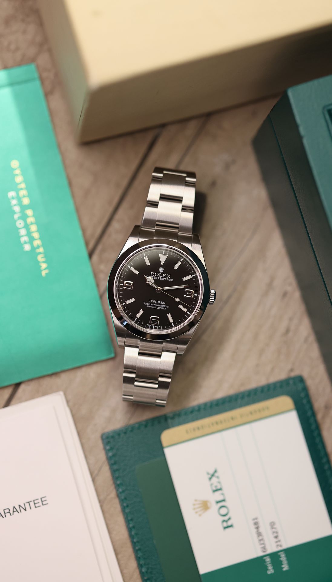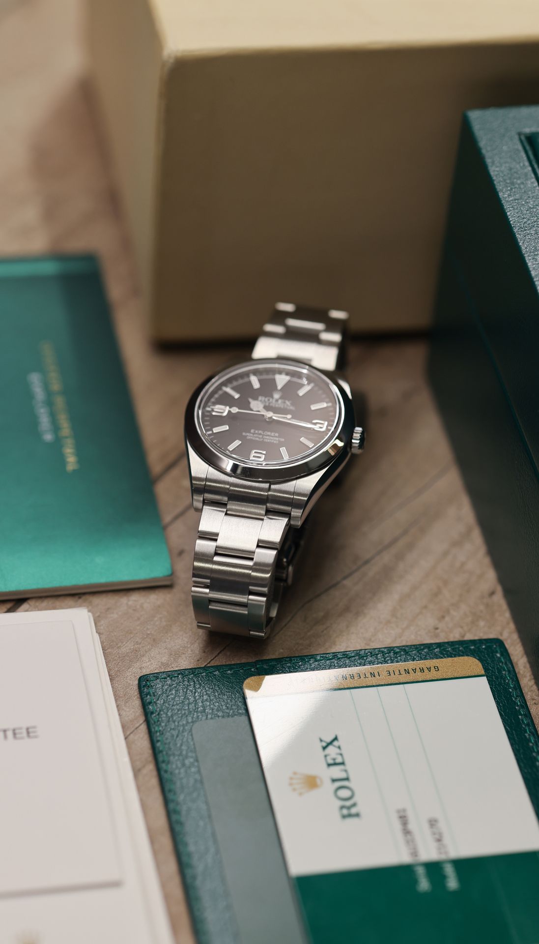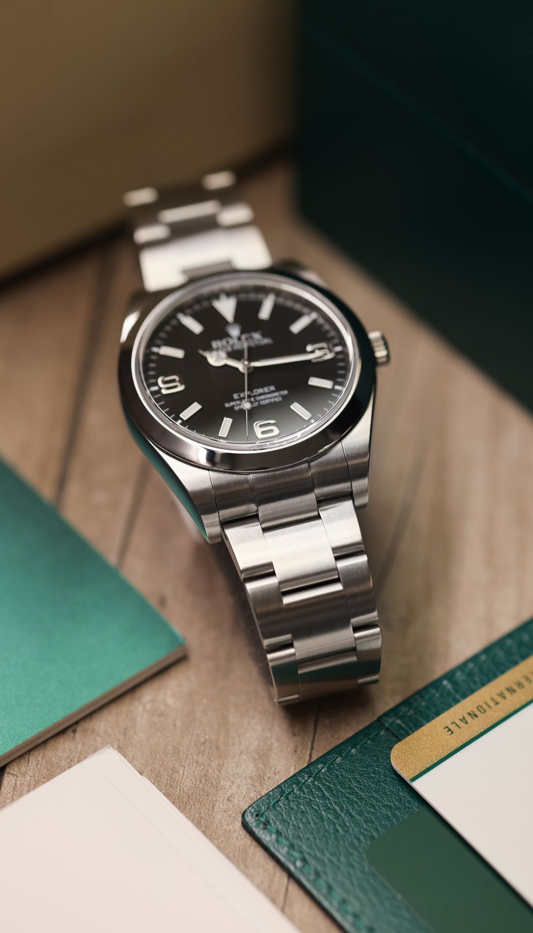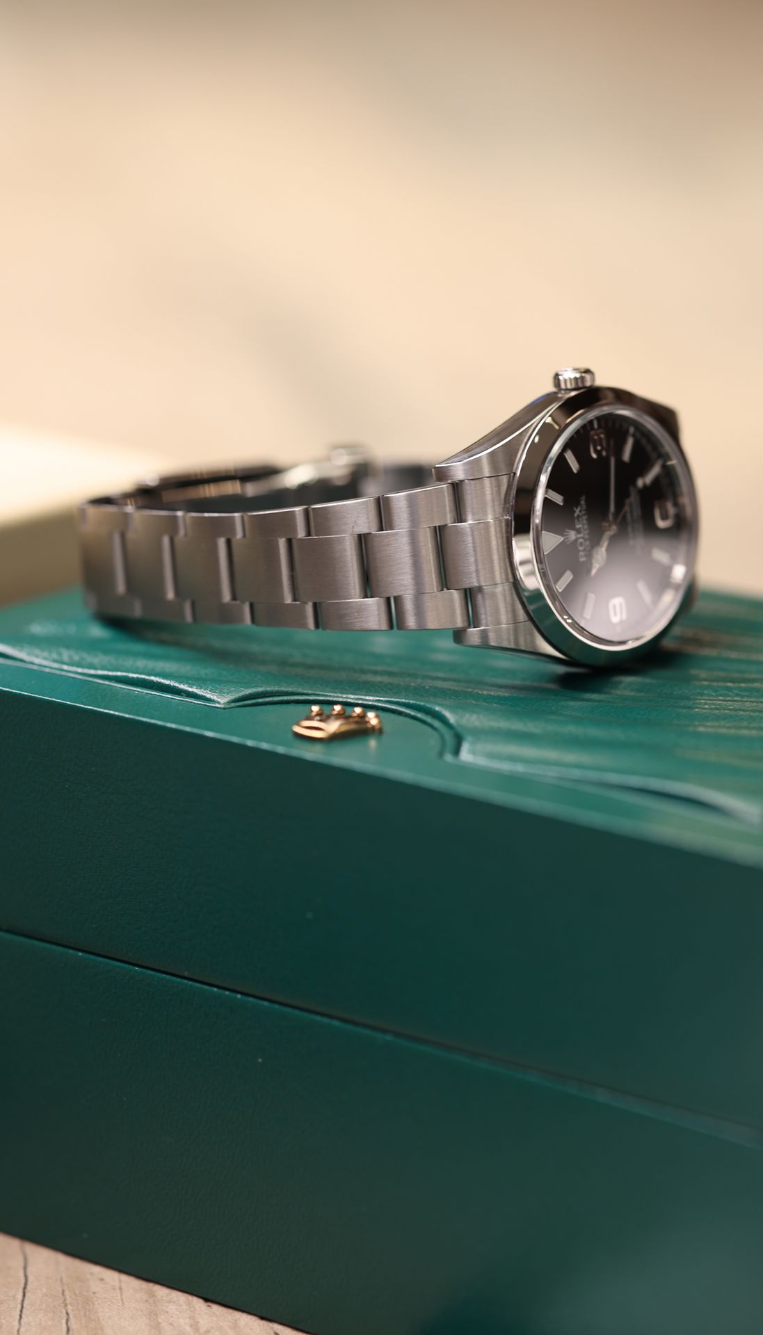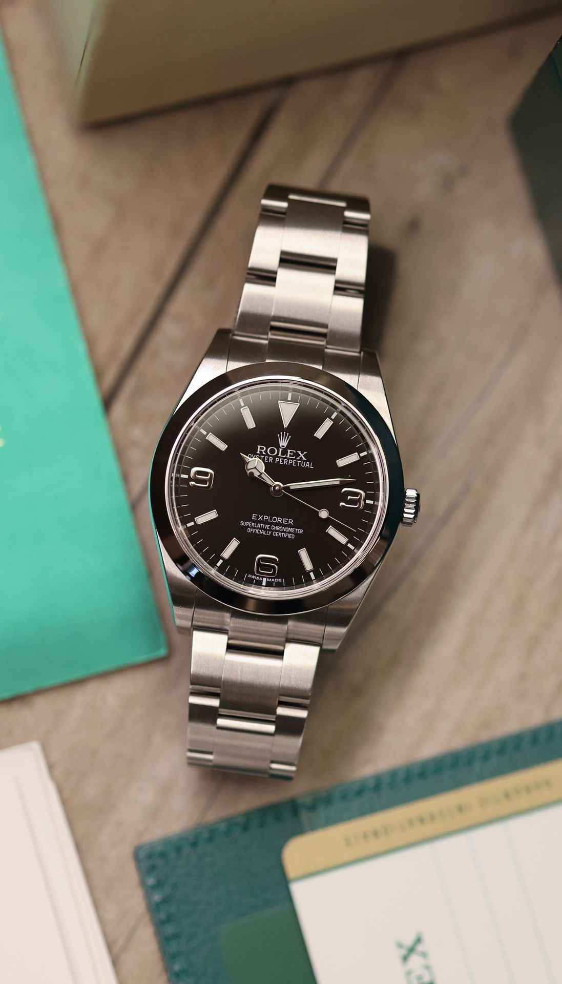 The Rolex Explorer reference 214270 is the first Explorer with a case size of 39mm. Before its introduction in 2010, all Explorers had a traditional 36mm case, and didn’t feature solid end links. Next to a new case, the watch also received a new movement: Caliber 3132.