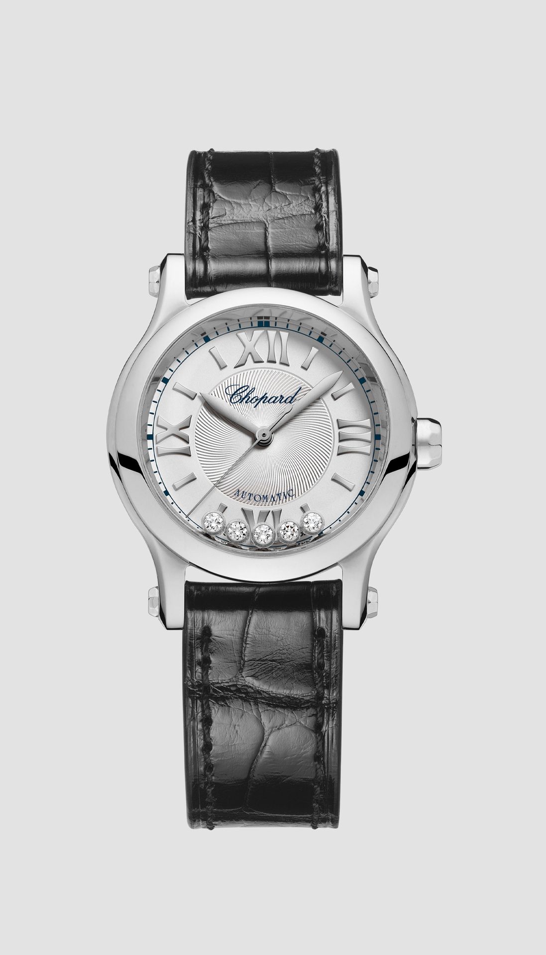The Happy Sport collection is the emblem of Chopard’s creativity and boldness. Its playful, free-spinning gems, dancing between two sapphire crystals, have captured the imagination since 1993, when Chopard became the first Maison to combine steel and diamonds. Its watchmaking expertise has enabled Chopard to equip the Happy Sport 30 mm with a mechanical movement featuring an automatic winding mechanism specially developed for feminine cases. Little Diamonds Do Great Things.