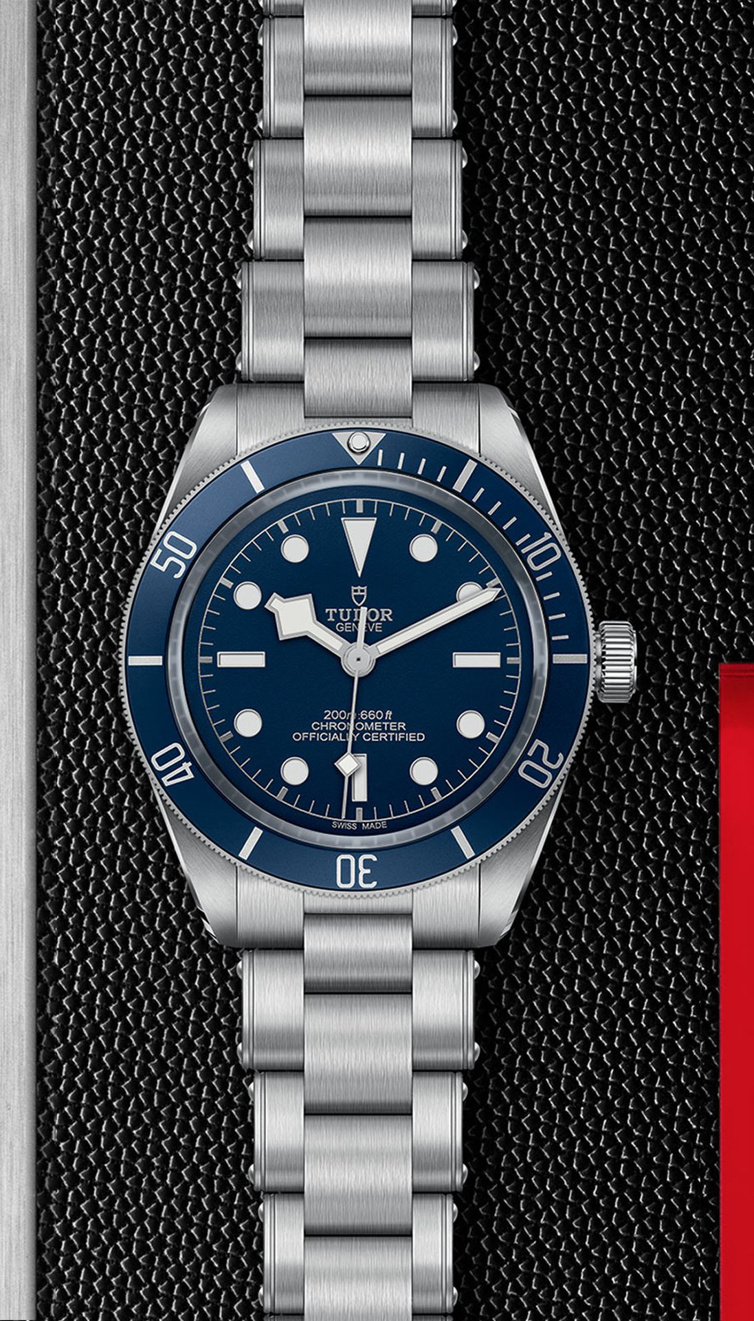 The Black Bay Fifty-Eight gets its name from the year 1958, in which the first TUDOR divers’ watch waterproof to 200 metres (660 ft), reference 7924 or “Big Crown”, was introduced. Among other aesthetic nods to this historic watch, the model offers a case 39 mm in diameter in keeping with the characteristic proportions of the 1950s.
