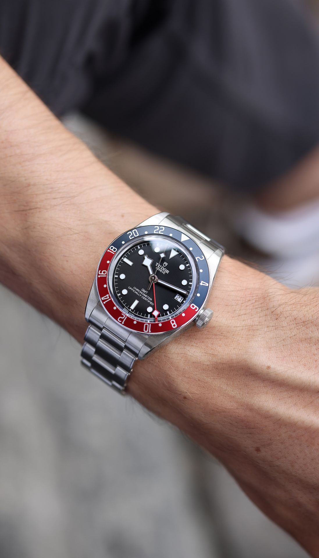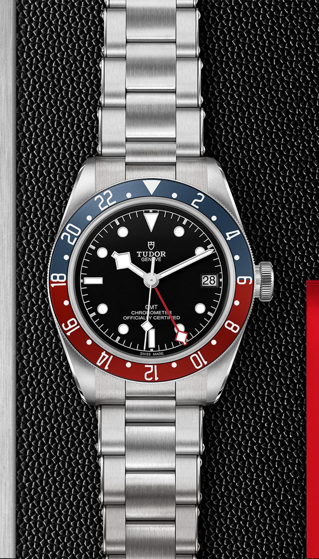 TUDOR's famous Black Bay divers' watch is available with a GMT function that establishes local time without losing sight of the time in two other time zones. Fitted with the Manufacture Calibre MT5652, the Black Bay GMT sports a 24-hour graduated rotating bezel with two colours.