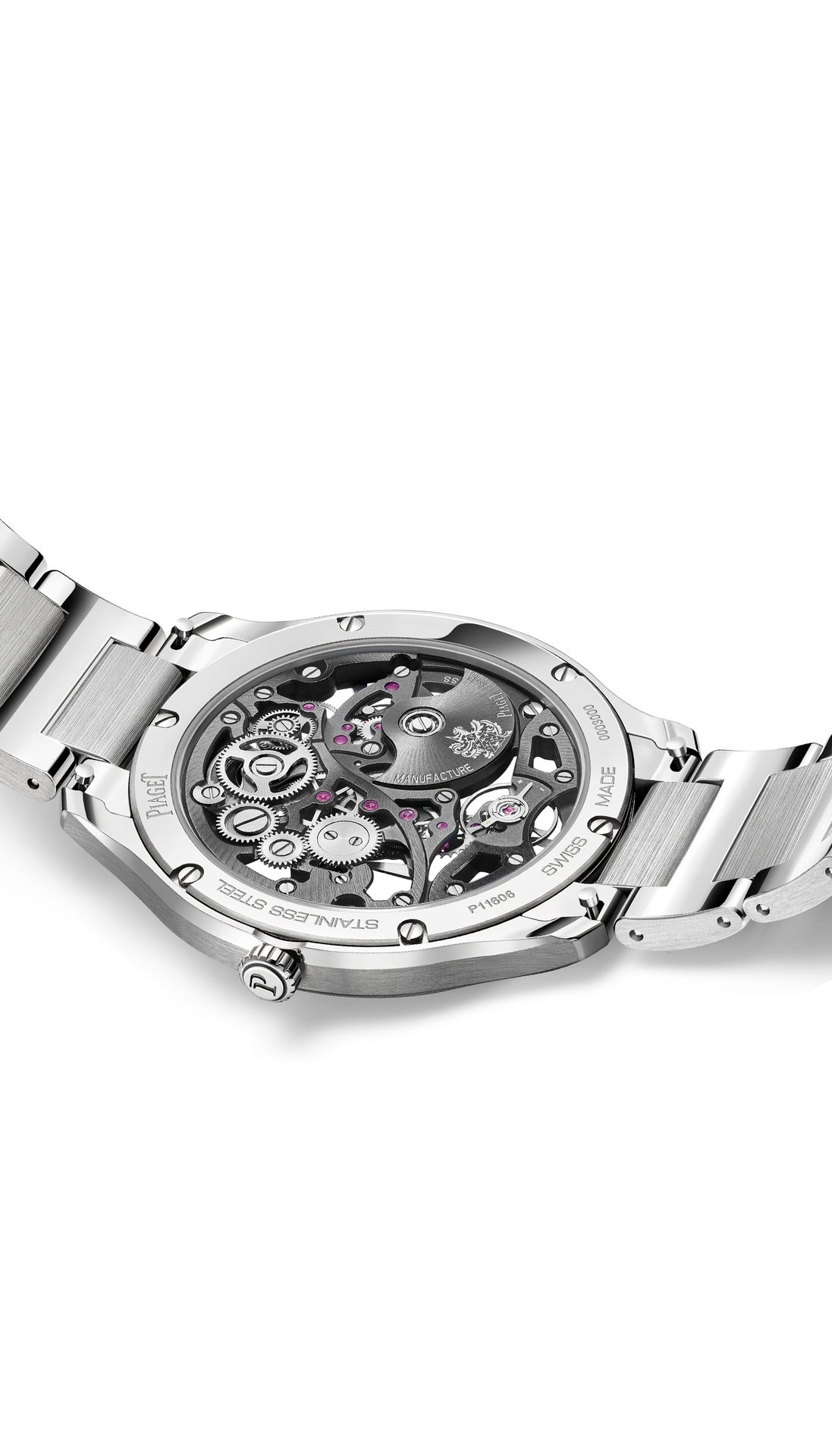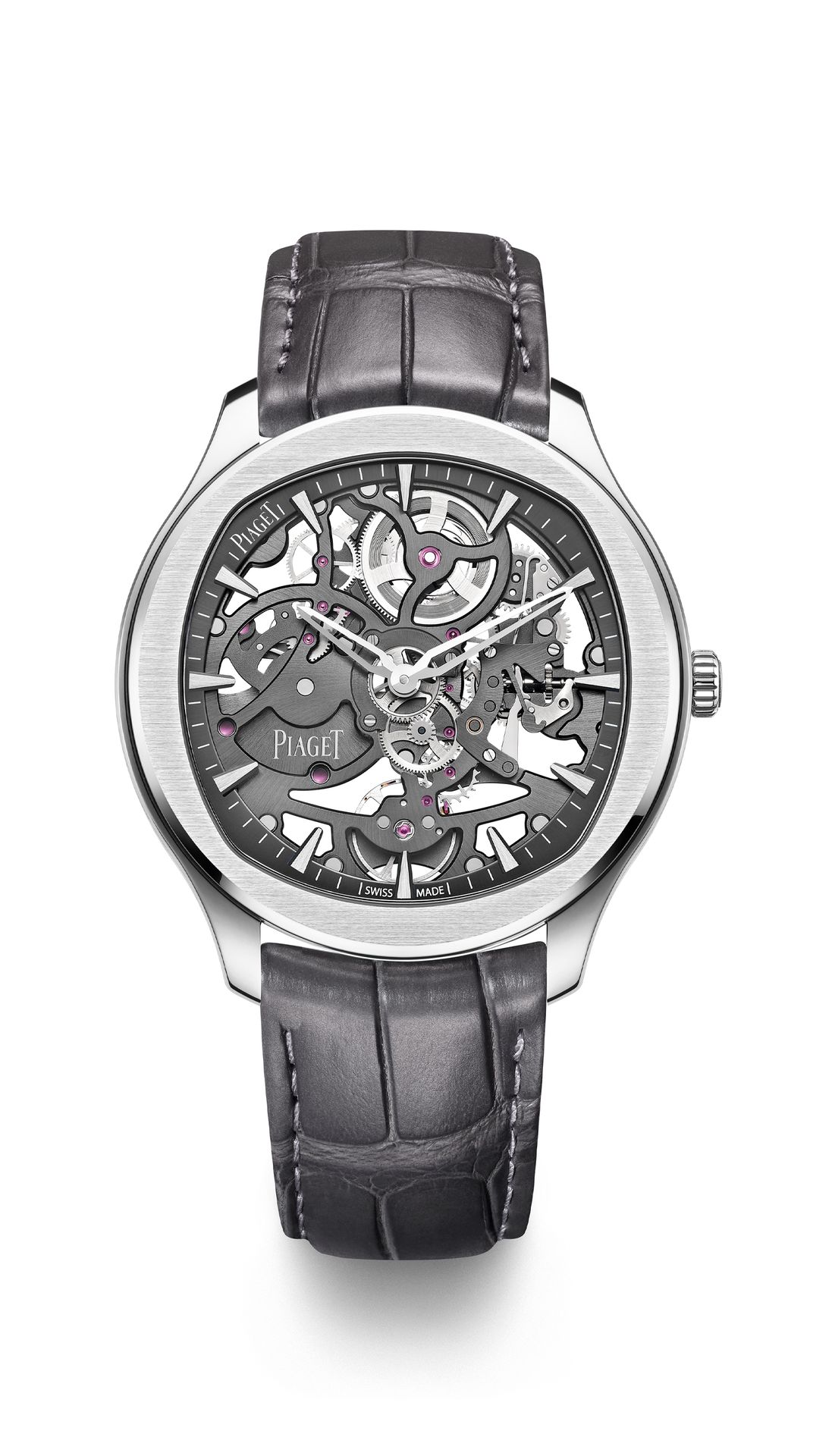 Interchangeable straps offer versatility to this luxury self-winding watch; whether solid steel or with the additional grey alligator leather strap, each offers a new dimension of wearability. It’s where Piaget’s craftsmen distinguish themselves, with their ultra-thin innovations and signature expression in outstanding finishes. Boost your collection with this skeleton watch; where daily life meets heightened style.