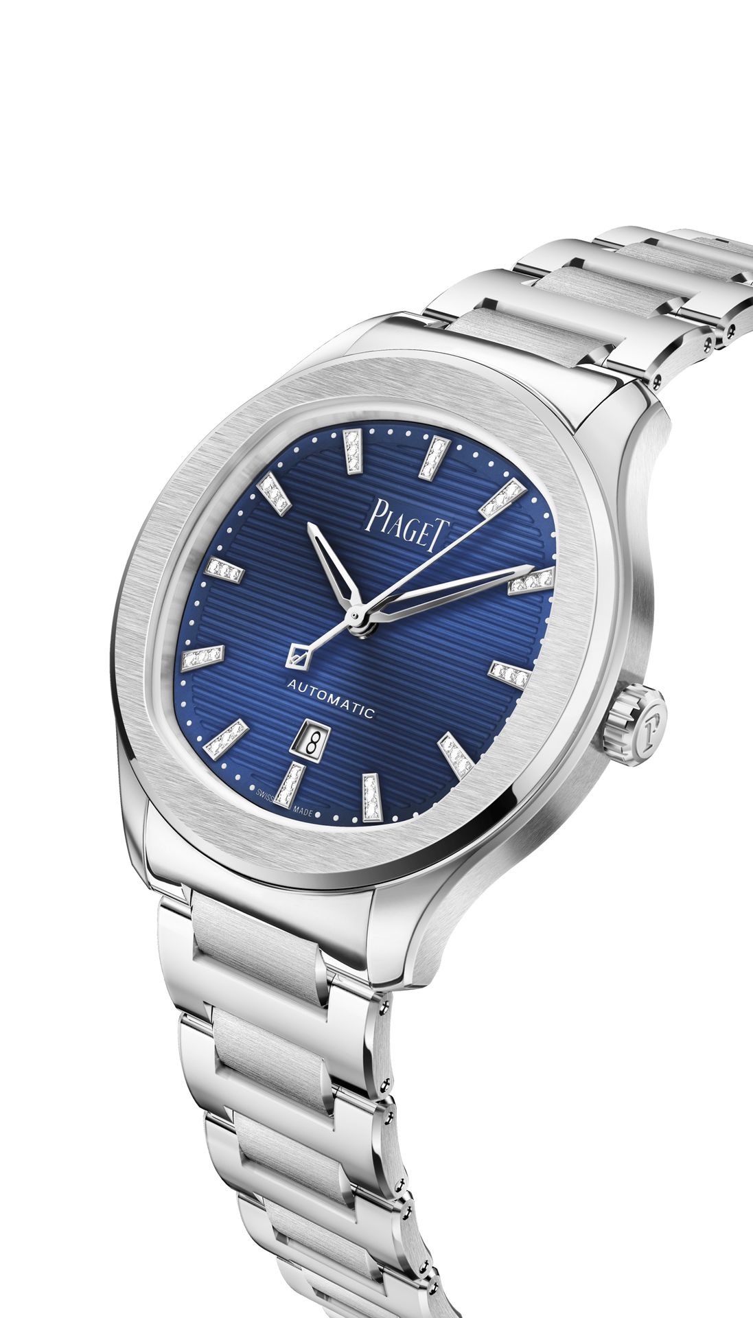 Updated with a touch of audacity in the form of diamond-set indexes, this women’s Piaget Polo watch brings all the beauty and iconography of this collection to a sleek and elegant women’s watch. This steel watch with an interchangeable bracelet is an exciting moment in Piaget history, crafting a 36 mm self-winding watch for women.