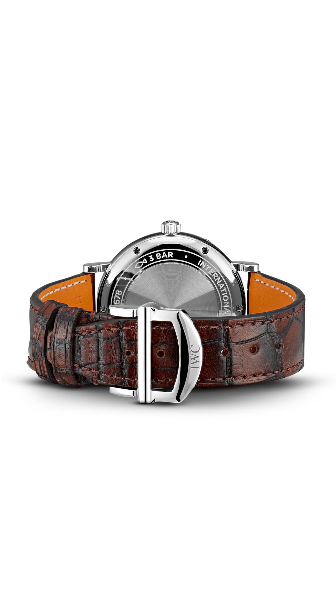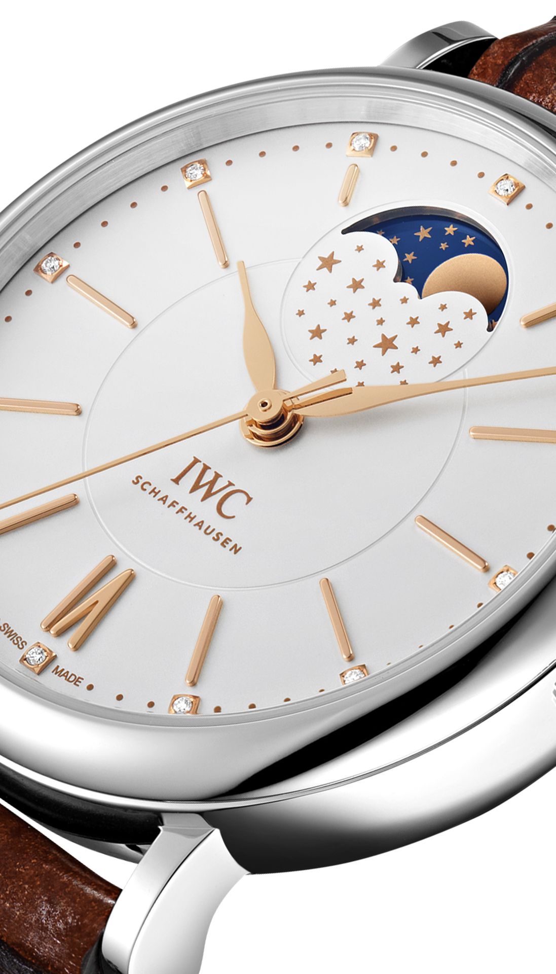 The moon phase display is not just an aesthetic masterpiece – it also reminds us that, long before time could be mechanically measured, it was the moon that showed us the passing of time. The stainless-steel version of the Portofino Automatic Moon Phase 37 with a silver-plated dial comes with a dark brown alligator leather strap from the House of Santoni. The sun-pattern finish on the dial reflects light in a myriad of different ways and makes the light appear to move around in circles when the watch is tilted from side to side, lending the timepiece a unique charm. The slightly recessed inner circle as well as the 12 diamonds add a sense of structure to the dial. The timepiece is water-resistant to 3 bar and powered by the 35800-calibre mechanical automatic movement. The phase of the moon shown in the display can be adjusted using a correction button at “2 o’clock”. The central seconds hand is stopped using the crown and the sapphire glass has an antireflective coating on both sides.