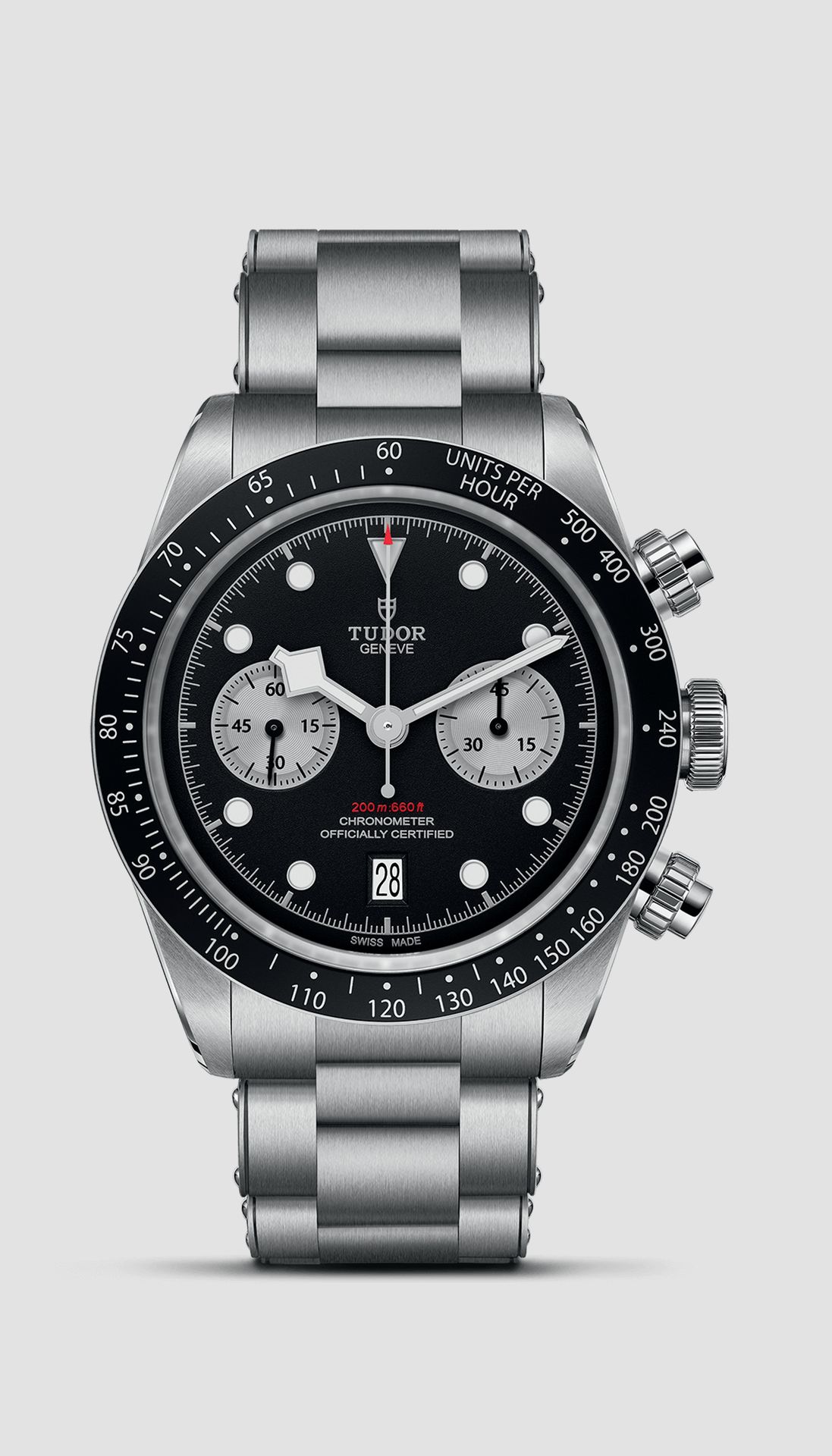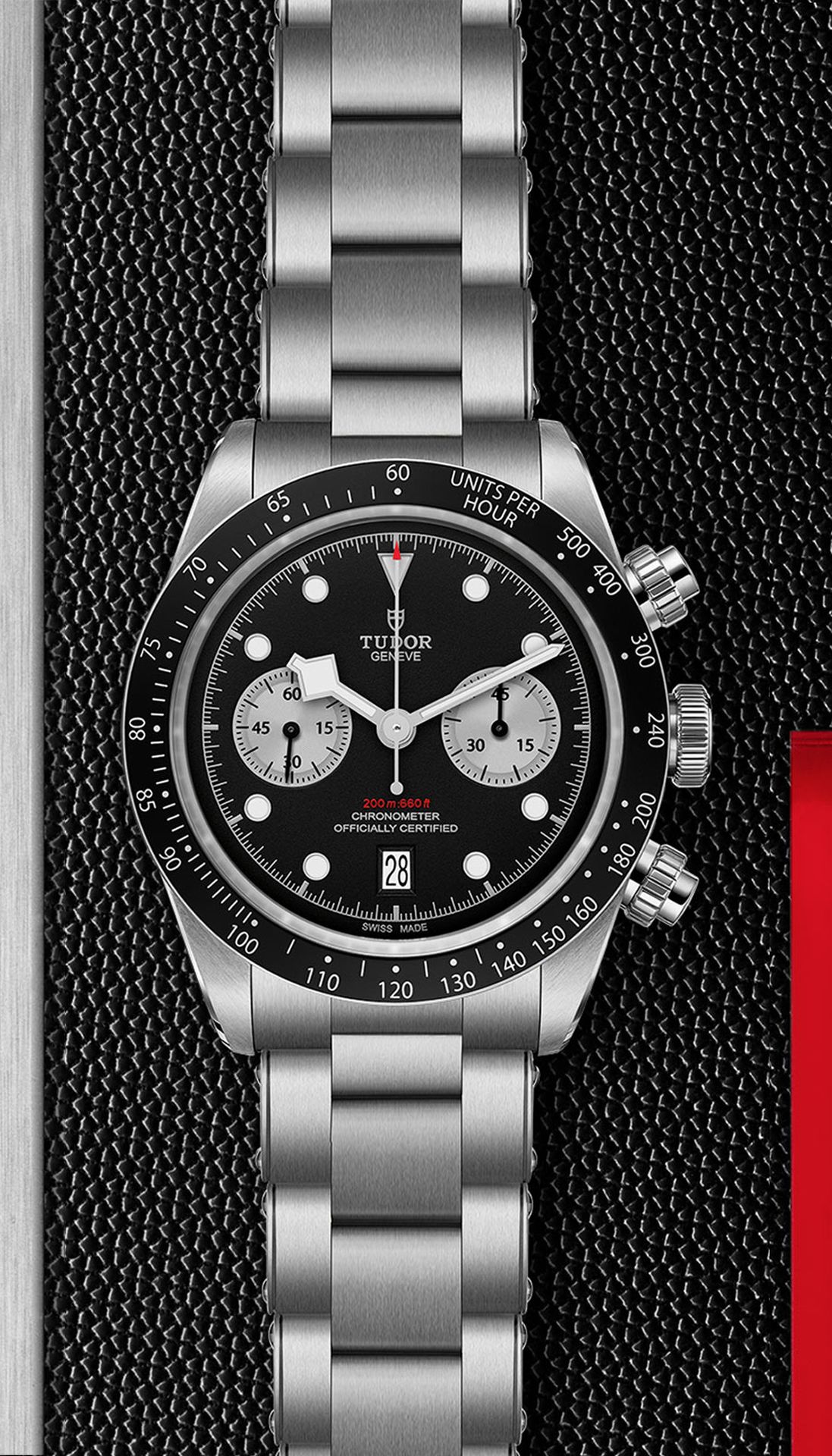 TUDOR has been producing watches that are closely tied to the world of motor sport since 1970, when the brand introduced its first chronograph. The Black Bay Chrono combines this heritage in a sport-chic chronograph, with contrasting sub-counters and a high-performance automatic Manufacture Calibre, with column wheel and vertical clutch.