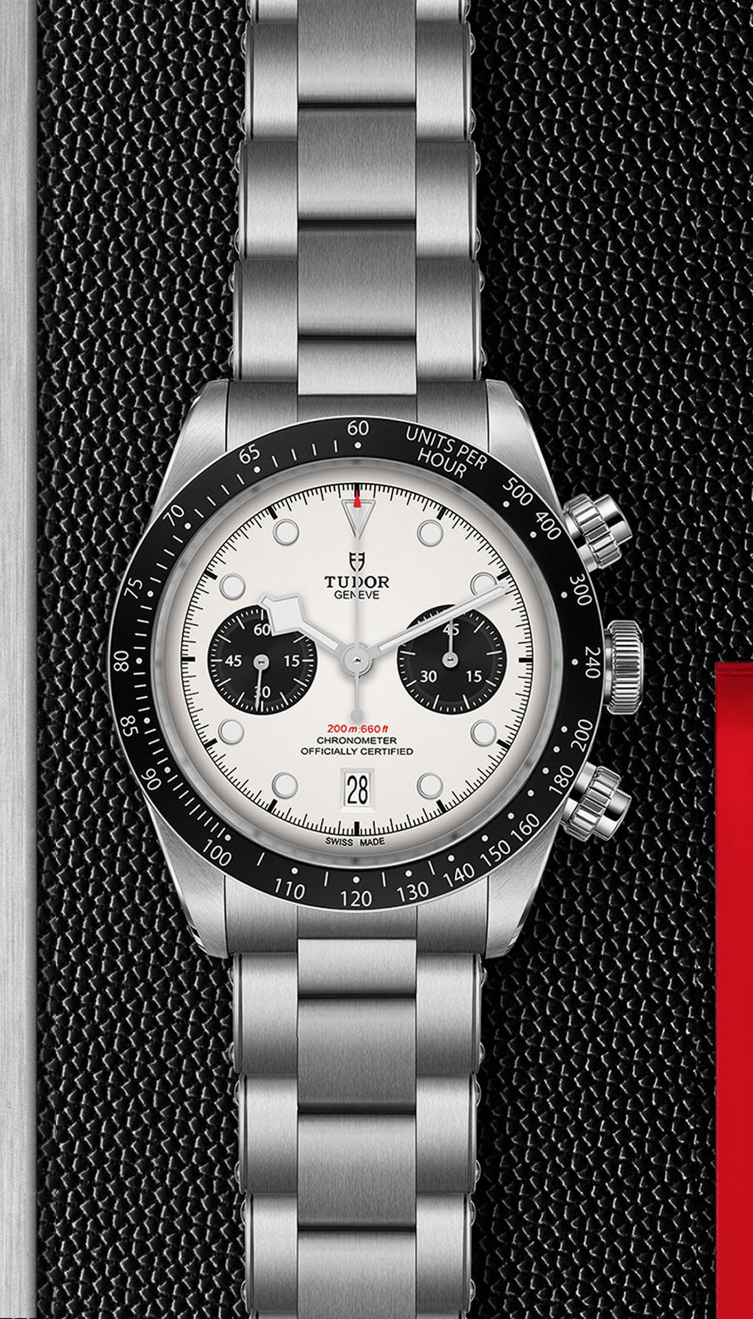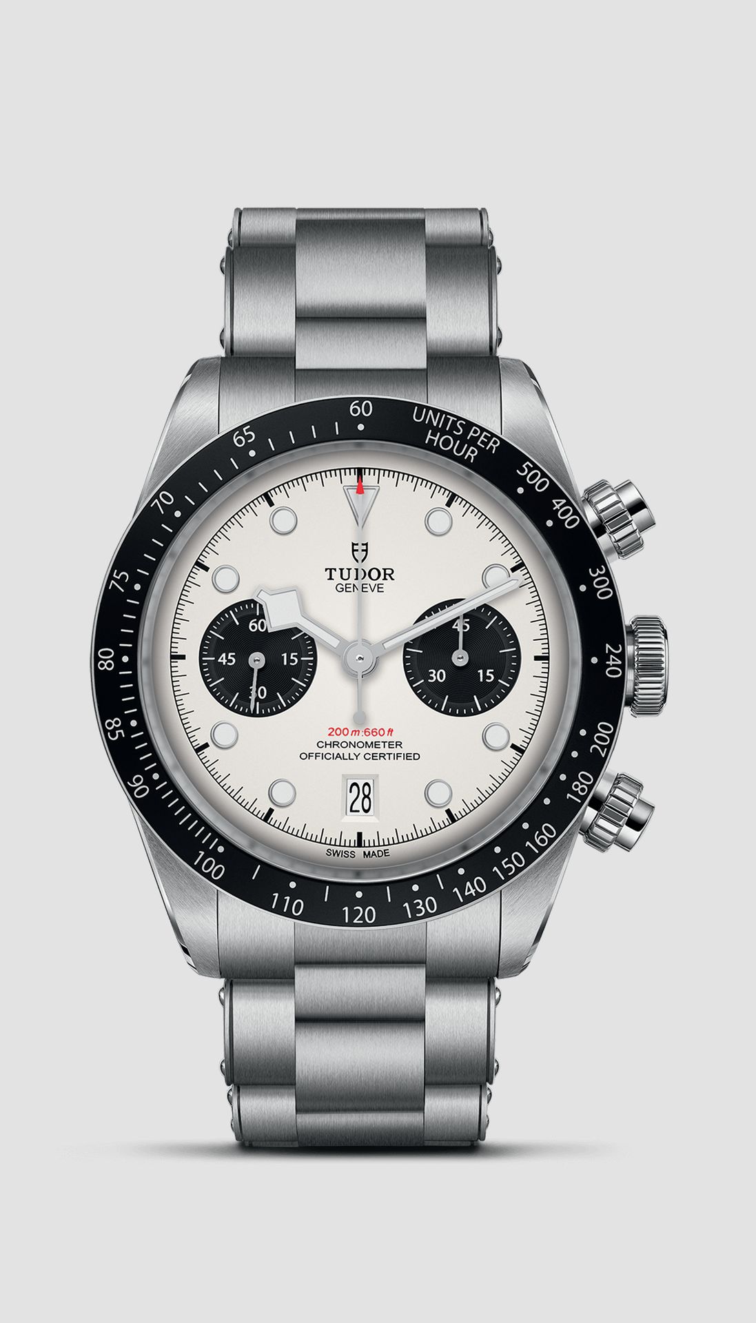 TUDOR has been producing watches that are closely tied to the world of motor sport since 1970, when the brand introduced its first chronograph. The Black Bay Chrono combines this heritage in a sport-chic chronograph, with contrasting sub-counters and a high-performance automatic Manufacture Calibre, with column wheel and vertical clutch.