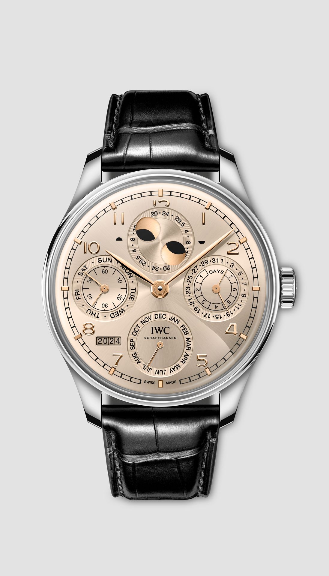 18 ct white gold case, Automatic, self-winding, Diameter 44.4 mm, Black alligator leather strap by Santoni, Strap width 22.0 mm.