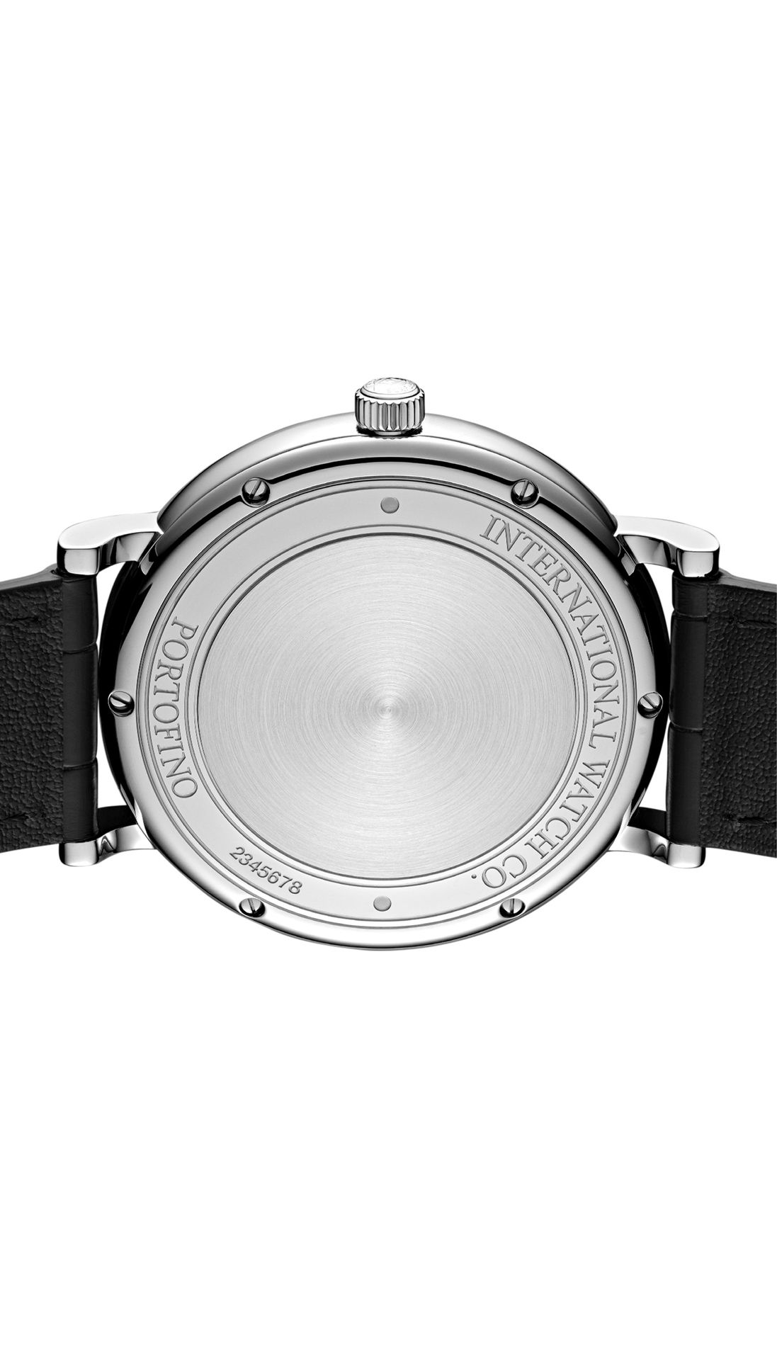 The Portofino Automatic with a silver-plated dial and black alligator leather strap is optionally available with a Milanaise mesh bracelet in stainless steel.