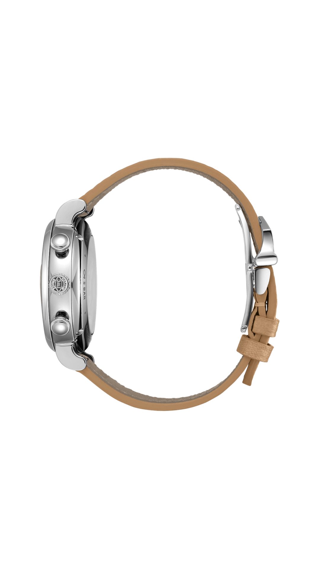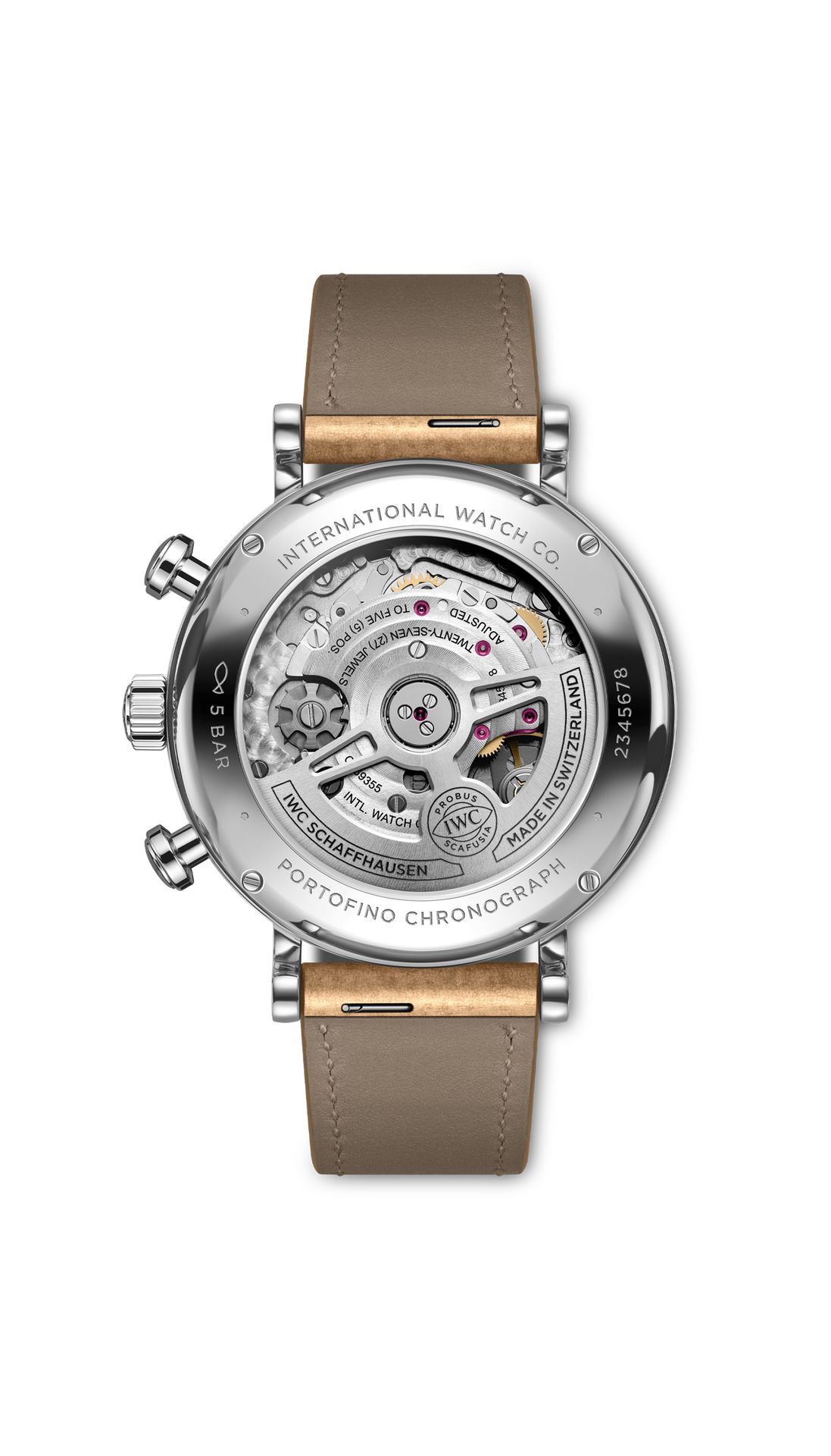 The Portofino Chronograph 39 combines classic and elegant Portofino design with a sporty chronograph complication. Its slightly reduced case diameter of 39 millimetres ensures excellent wearability even on more slender wrists. This version features a stainless steel case. The rhodium-plated hands and appliques harmonize beautifully with the silver-plated dial. At work inside the case is the IWC-manufactured 69355 calibre chronograph movement, enabling the measurement of stop times of up to 30 minutes. The chronograph in classic column-wheel design is visible through the sapphire glass case back. Sporty and elegant at once, this timepiece is fitted with a beige calfskin strap. Thanks to the integrated quick-change system, the strap can be exchanged in no time at all.